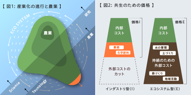 〈 経営面 〉 農家は、その集落にあって、昔から、自然環境を損なわない努力を続けているが、その努力は生産コストに計上されていない可能性がある。少なくとも当該コストは把握され、理解されるべきである。(図2)