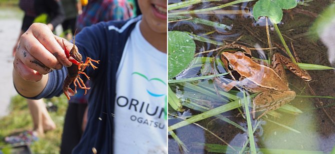 田伝むしでは、木村さんのご両親が1987年(昭和62年)から農薬や化学肥料を使わない米の栽培を始めたそうです。木村さんが継いだのは2005年(平成17年)とのことです。 田んぼによっては20年、30年と無農薬農法を続けてきている。そんな田んぼには今も、ザリガニやカエルやオタマジャクシがちゃんと生息しています。