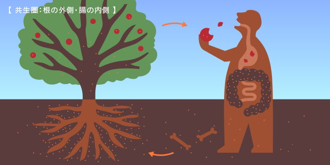 表と裏、根をひっくり返せば大腸だし、大腸をひっくり返せば根。大腸の内側が微生物の世界であるように、根の外側すなわち土の中も微生物の世界です。医療者が腸内環境に注目するように、農業者は土壌に注目する。それはつまり、害を為す微生物もいるが、それより遙かに多い微生物はそうではないどころか、有益である。このことを知っているからです。彼らは微生物を無差別に攻撃する医療や農法は忌避する。