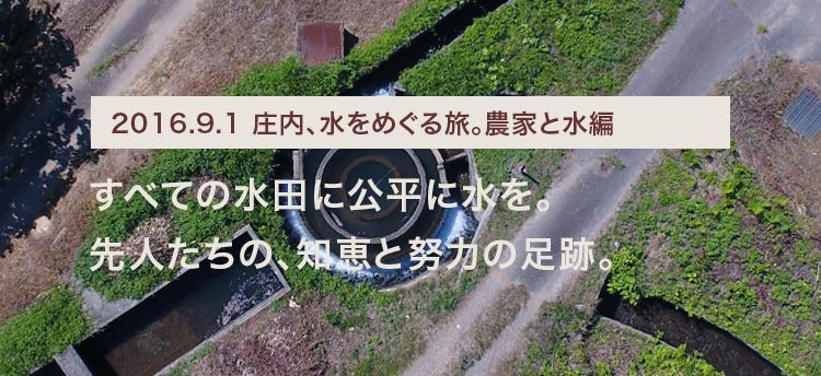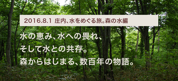 庄内、水をめぐる旅。農家と水編(2016.9.1) すべての水田に公平に水を。先人たちの、知恵と努力の足跡。 庄内、水をめぐる旅。森の水編(2016.8.1) 水の恵み、水への畏れ、そして水との共存。森からはじまる、数百年の物語り。