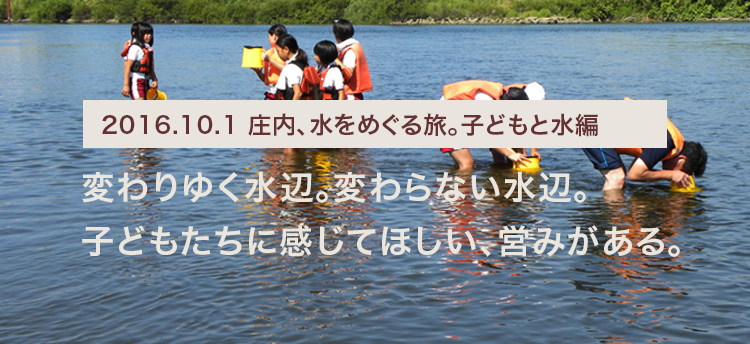 庄内、水をめぐる旅。子どもと水編(2016.10.1) 変わりゆく水辺。変わらない水辺。子どもたちに感じてほしい、営みがある。 庄内、水をめぐる旅。農家と水編(2016.9.1) すべての水田に公平に水を。先人たちの、知恵と努力の足跡。 庄内、水をめぐる旅。森の水編(2016.8.1) 水の恵み、水への畏れ、そして水との共存。森からはじまる、数百年の物語り。