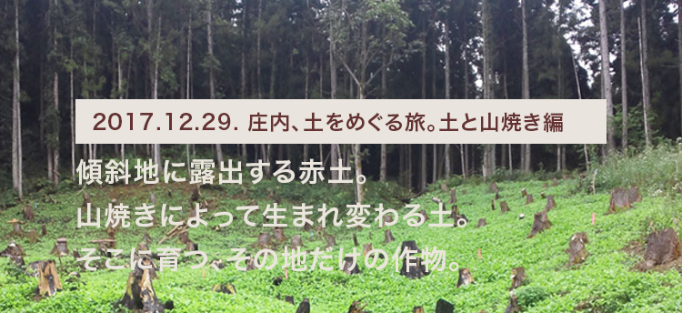 庄内、土をめぐる旅。土と腐植編(2018.2.26) 家畜の糞と廃材で、腐植をつくる。「廃棄物」を資源に変え、地域の食を持続させる「土」を。 庄内、土をめぐる旅。土と山焼き編(2017.12.27) 傾斜地に露出する赤土。山焼きによって生まれ変わる土。そこに育つ、その地だけの作物。 庄内、水をめぐる旅。循環する水編(2017.6.30) 繰り返される水のサイクル。再び、数百年の物語のはじまりの場所へ。 庄内、水をめぐる旅。雪編(2017.3.25) 人々を、「内」に閉じ込める冬。苛烈な地吹雪の中に育む、次の季節への希望。 庄内、水をめぐる旅。海の水編(2016.12.19) 漁を左右するのは、技術が半分、運が半分。命がけだからこそ「アヤ」を信じる。 庄内、水をめぐる旅。暮らしと水編(2016.11.1) そこかしこに、湧き出でる水。そして暮らしに浸透する、山の神への想い。 庄内、水をめぐる旅。子どもと水編(2016.10.1) 変わりゆく水辺。変わらない水辺。子どもたちに感じてほしい、営みがある。 庄内、水をめぐる旅。農家と水編(2016.9.1) すべての水田に公平に水を。先人たちの、知恵と努力の足跡。 庄内、水をめぐる旅。森の水編(2016.8.1) 水の恵み、水への畏れ、そして水との共存。森からはじまる、数百年の物語り。